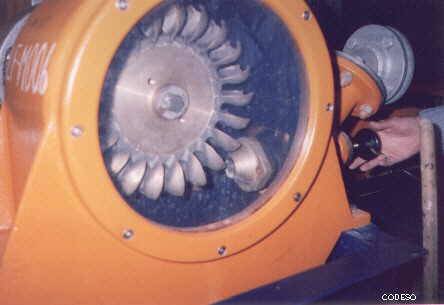 Turbina Pelton experimental con vista a cucharras y el chiglor