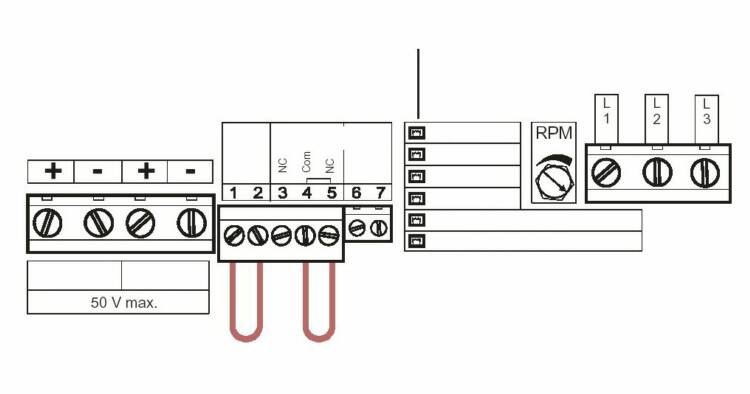- Dos entradas para detector de marcha en seco, interruptor de flotador, presostato, mando a distancia, etc.
